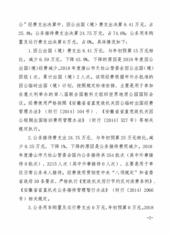 潛山市天柱山管委會(huì)2018年度一般公共預(yù)算財(cái)政撥款“三公”經(jīng)費(fèi)支出決算情況說(shuō)明