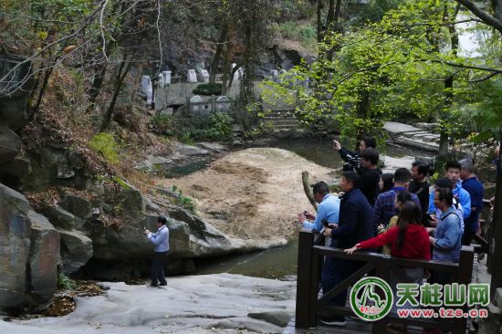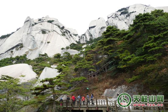 說(shuō)好只是散心,并不帶隊(duì),所以輕松多了,目光可以隨著上山的松鼠,一蹦一躍,消失在松林里;心情可以隨著剛探出頭的竹筍,往更高的竹節(jié)攀越。人是個(gè)善于調(diào)整精靈,心情也會(huì)陷入閑情的包容之城中,境由心生。置身天柱山之中,山的博大包容自然會(huì)緊緊相隨,導(dǎo)游嘴里的景觀,都如云層一一散淡,而我進(jìn)入山中,是否要尋找李白、白居易、王安石、蘇東坡、黃庭堅(jiān)等文學(xué)大家在此留下的足跡呢?還是要傾聽(tīng)到他們?cè)诖肆粝碌能O音?問(wèn)題有點(diǎn)漂浮不定,反讓腳步更加殷實(shí)。景觀之中納入人文的元素,生命力自然會(huì)更長(zhǎng)久。天柱山之前,也曾補(bǔ)過(guò)課,知道一點(diǎn)大家與天柱山的故事,如白居易留下了“天柱一峰擎日月,洞門(mén)千仞鎖云雷”。蘇東坡留下了“青山只在古城隅,萬(wàn)里歸來(lái)卜筑初”。王安石留下了“野性堪如此,潛山歸去來(lái)”。公元前106年,漢武帝劉徹登臨天柱山封號(hào)“南岳”。還有,天柱山幾乎包羅了世界上所有花崗巖風(fēng)景區(qū)的地貌景觀:奇峰、怪石、洞穴、峽谷等勝景。尤以花崗巖崩塌及堆壘景觀典型而堪稱世界一絕,成為國(guó)內(nèi)同類景觀的代表而冠名為“中國(guó)天柱山型花崗巖地貌”。文景相宜,不僅是一種厚重體現(xiàn),更是一種自然的厚待。這種厚實(shí)如山下的三祖禪寺,一花一世界,一葉一如來(lái),耳聽(tīng)松濤,無(wú)窮般若心自在,俯視滾滾紅塵的萬(wàn)千生命。當(dāng)心寧?kù)o到聽(tīng)禪物語(yǔ),聆聽(tīng)花開(kāi)之時(shí),就可以封塵所有的記憶,撇開(kāi)所有的糾纏,拋開(kāi)所有的紛擾,一個(gè)人,一座山,足矣。
