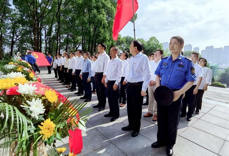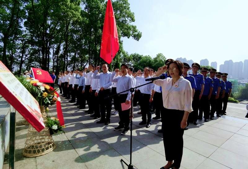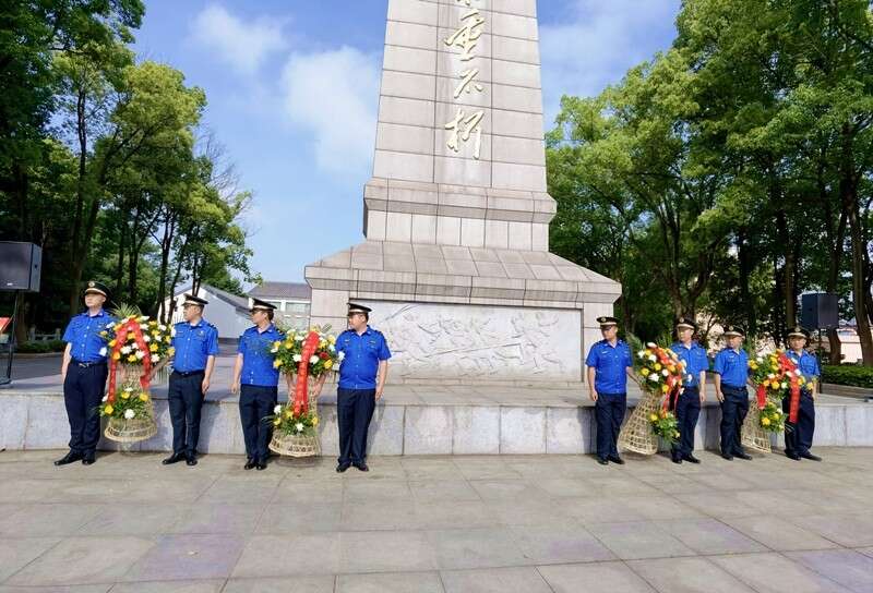 ? ? 在革命烈士紀(jì)念碑前,黨員們進(jìn)行祭奠革命先烈掃墓儀式,由天柱山執(zhí)法大隊(duì)隊(duì)員敬獻(xiàn)花籃,市委常委、天柱山管委會(huì)副主任涂高生、天柱山管委會(huì)副主任余炳陽、市文化旅游體育局局長李桃生、天柱山旅游發(fā)展有限公司董事長汪全海整理挽聯(lián)。天柱山風(fēng)景區(qū)紀(jì)檢監(jiān)察工委書記江霞帶領(lǐng)大家重溫入黨誓詞,向烈士鞠躬致敬。