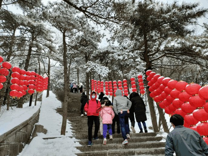 ? ? 辭舊迎新,正月初一,不少人選擇走出家門,去景區(qū)游玩行大運。天柱山景區(qū)為了給游客提供便利安全的服務,特地在除夕前加班加點清除路上積雪。天柱山上的大紅燈籠,為一年一度的新春佳節(jié),增添了濃郁的歡樂氣氛。截止下午四時,天柱山游客量1.08萬人次。