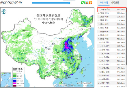 光明網(wǎng):安徽天柱山24小時(shí)潑雨330毫米!為1949年來(lái)最強(qiáng)單日降雨