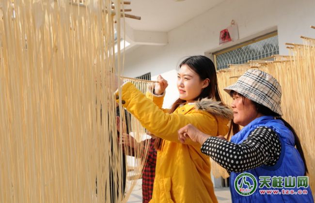 餐廳攻略: 2015年2月13日,安徽電視臺《美食安徽》攝制組來安慶潛山尋訪美味。在天柱山麓的風情水吼嶺,白馬潭農家徐勝利手工掛面坊晾曬在家門口的小麥粉手工干掛面,被收入《美食安徽》的高清鏡頭,這將為羊年春節(jié)的衛(wèi)視熒屏嵌入一道遺落在鄉(xiāng)間的綿長年味,喚醒人們漸行漸遠的原生態(tài)的美食記憶。 潛山農家手工掛面已有上千年歷史,是人們鄉(xiāng)情記憶中的經(jīng)典美食和舌尖上的清香年味。農民徐勝利家庭掛面坊靠祖?zhèn)魇炙嚭凸ぞ撸竟?jié)性全手工加工生產小麥粉干掛面,成為當代鄉(xiāng)村不可多見的一道靚麗風景,吸引了鄉(xiāng)親鄰里的參觀購買,也成為進入天柱山景區(qū)的省內外游客感受鄉(xiāng)愁和鄉(xiāng)情的溫馨所在。但愿這一老手藝在人們對“根”的記憶中得以永久傳承。