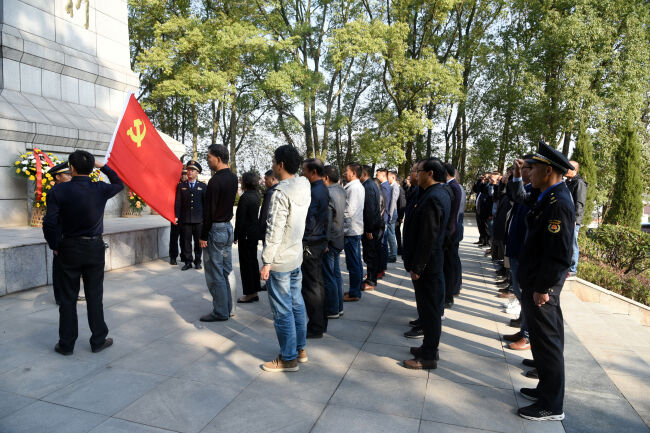 上午9時,全體人員整齊列隊,緩步走進(jìn)革命烈士陵園,向革命烈士紀(jì)念碑敬獻(xiàn)花籃,在莊嚴(yán)肅穆的紀(jì)念碑前肅立默哀,并向烈士紀(jì)念碑三鞠躬。全體黨員面向鮮紅的黨旗,莊嚴(yán)地舉起右手進(jìn)行入黨宣誓,表達(dá)了不忘初心、牢記使命的政治信念,表達(dá)了為黨的事業(yè)奮斗終身的決心和愿望。